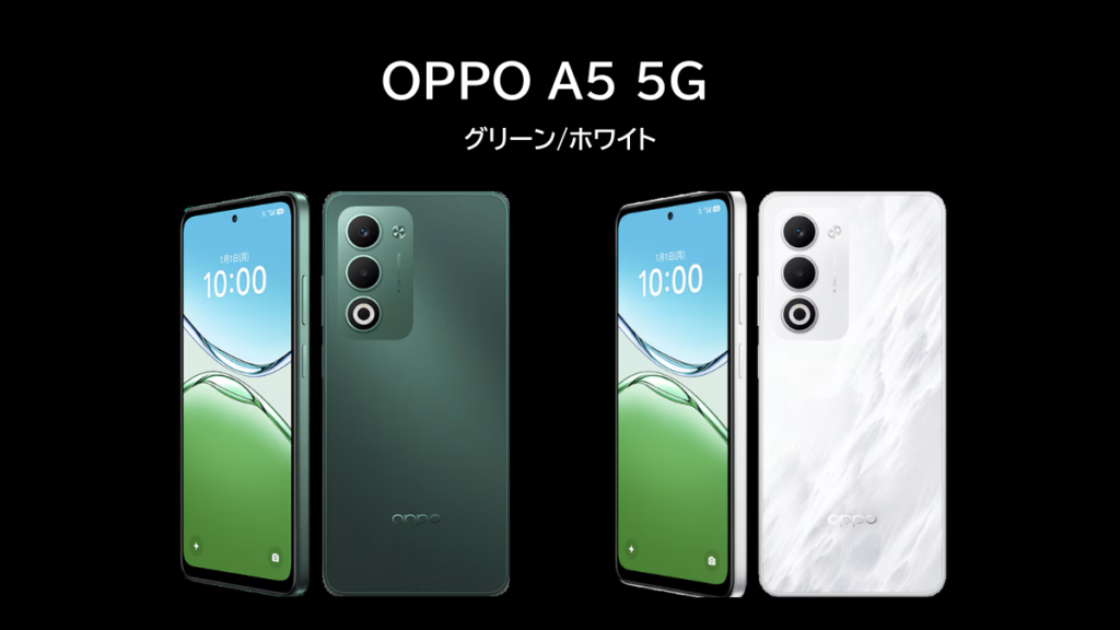 OPPO A3 5Gは、スタイリッシュなデザインで耐久性と長寿命バッテリーが特徴の低価格スマートフォンです。